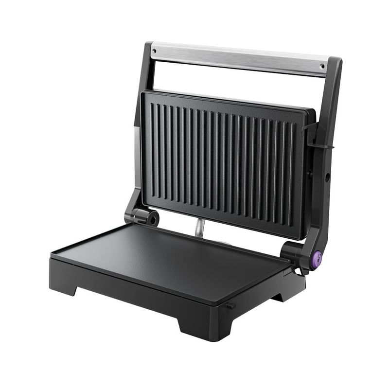 Sua altura ajustável se adapta a qualquer lanche, e a abertura de 180° o transforma em uma chapa para grelhar mais alimentos de uma só vez. Prático, possui coletor de gordura, trava para armazenamento vertical que economiza espaço e um design moderno em inox que complementa sua cozinha.