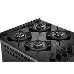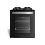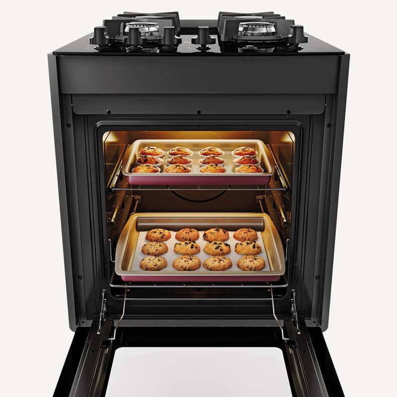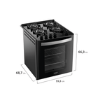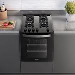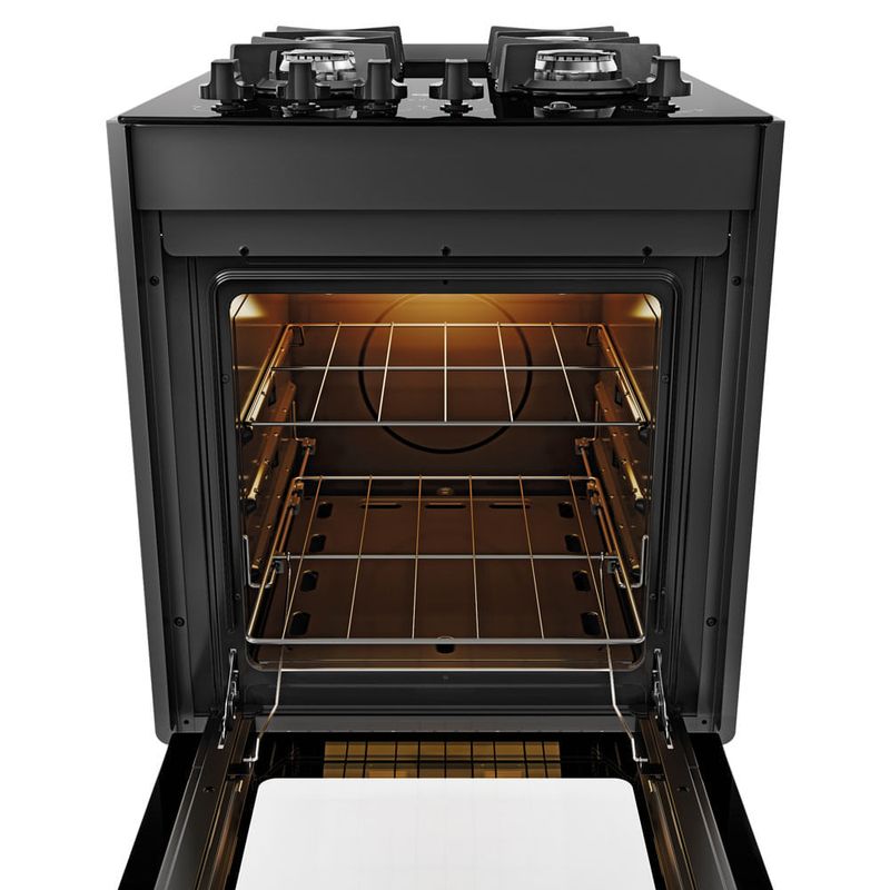 A mesa de vidro temperado e o puxador em alumínio escovado criam um visual bonito, que combina com diferentes estilos de decoração. As 4 bocas, incluindo a potente Mega Chama de 3kW, permitem preparar diversos pratos ao mesmo tempo, com eficiência. O forno de 60 litros, com isolamento em lã de basalto, garante um assado uniforme e perfeito.