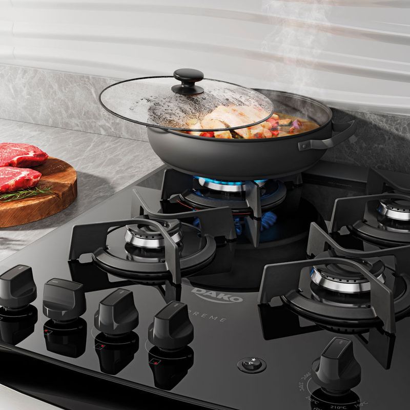 O Fogão de Embutir Supreme 4Q Dako transforma sua cozinha com tecnologia, praticidade e design moderno. Desenvolvido especialmente para ambientes planejados, ele combina beleza e desempenho para atender a quem gosta de preparar refeições com qualidade.